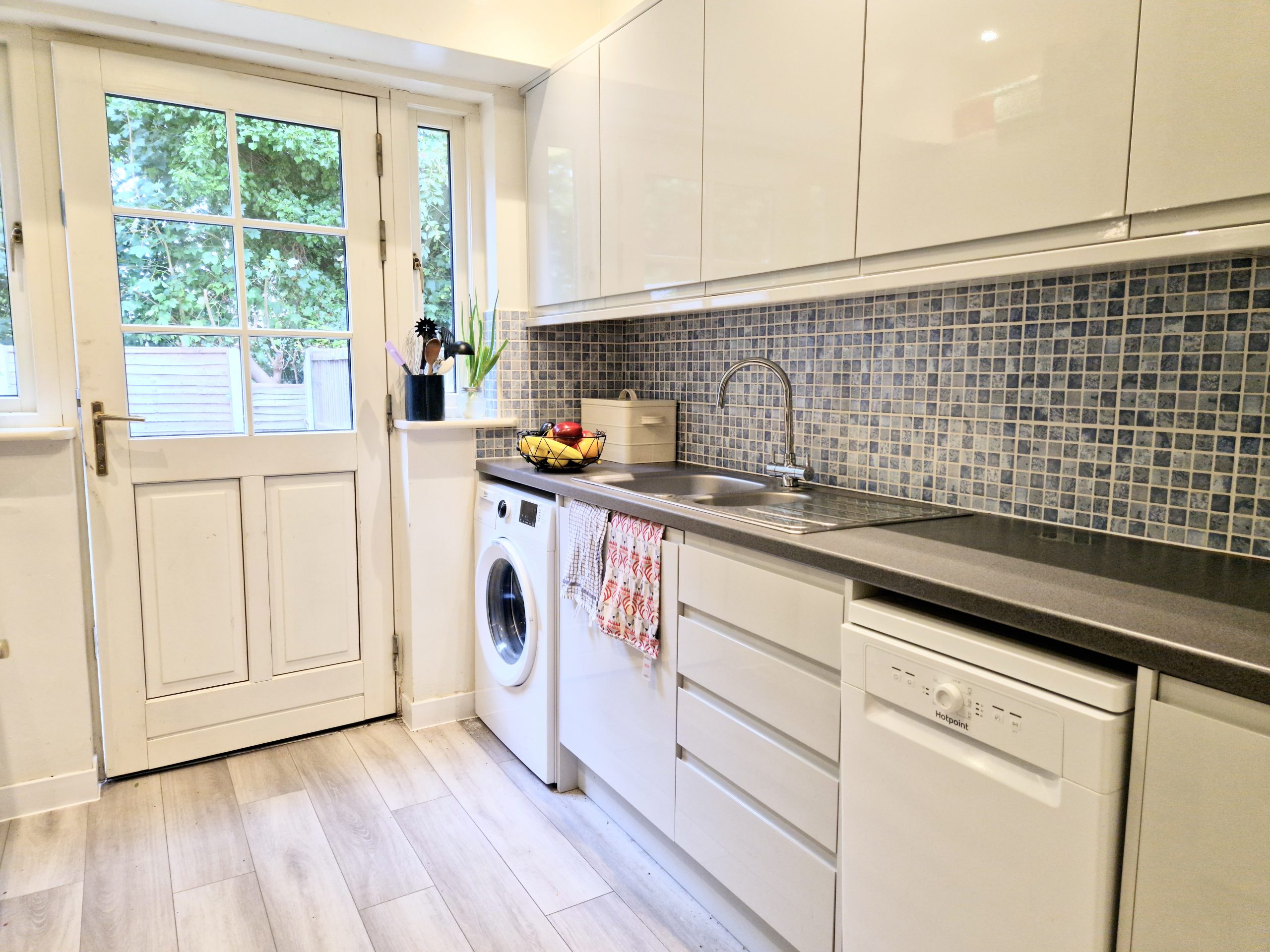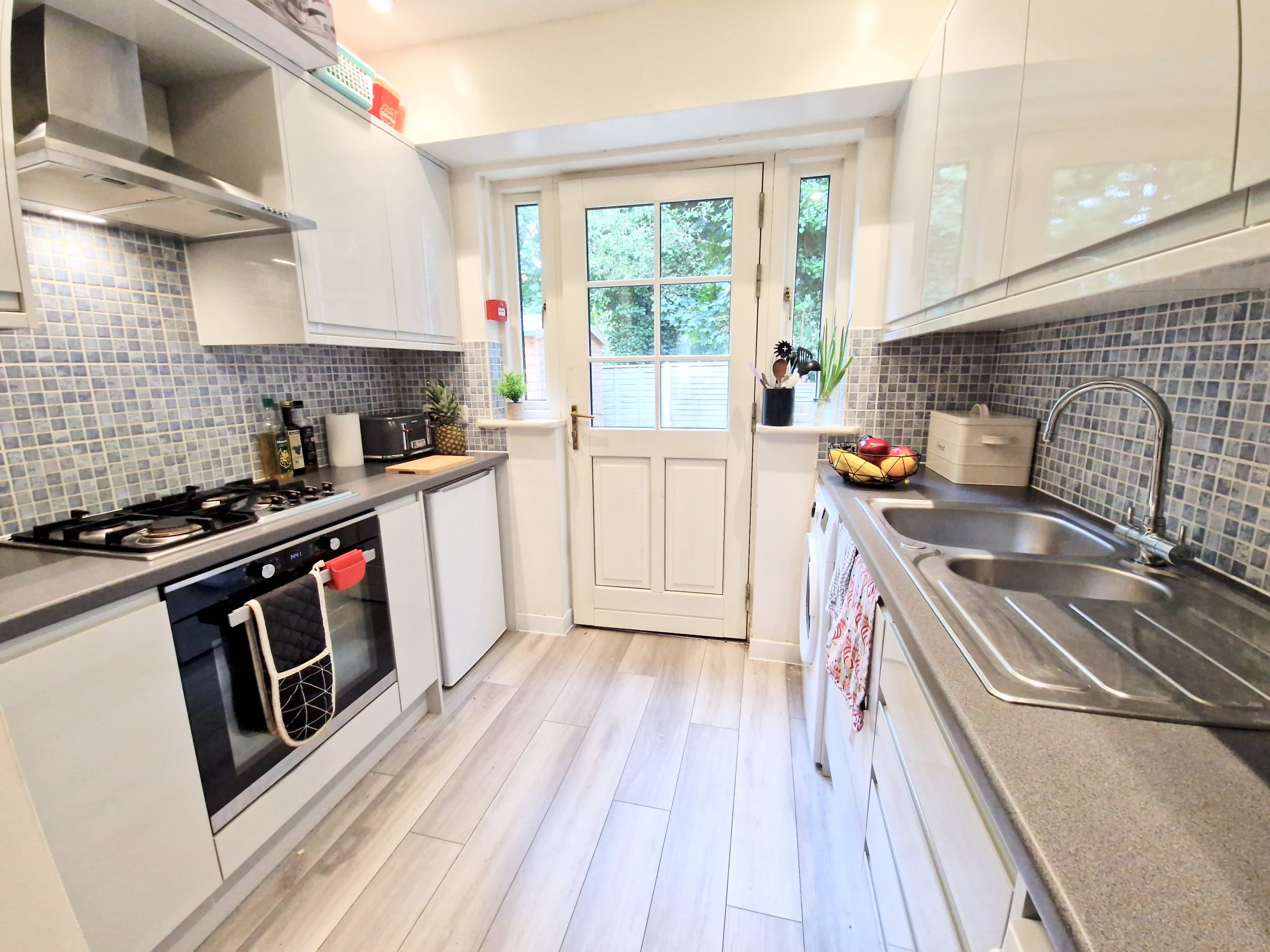 On the ground floor, there is a spacious front living room with a large bay window and dining table plus one bedroom which has french doors leading out to the garden. The modern kitchen at the back of the property has modern sleek gray units with a gas oven and hob, fridge/freezer, Washing Machine/Tumble Dryer and a DISHWASHER. On the middle floor there is two bedrooms (one en-suite), a shower room and separate WC. The top floor comprises of the final three bedrooms.