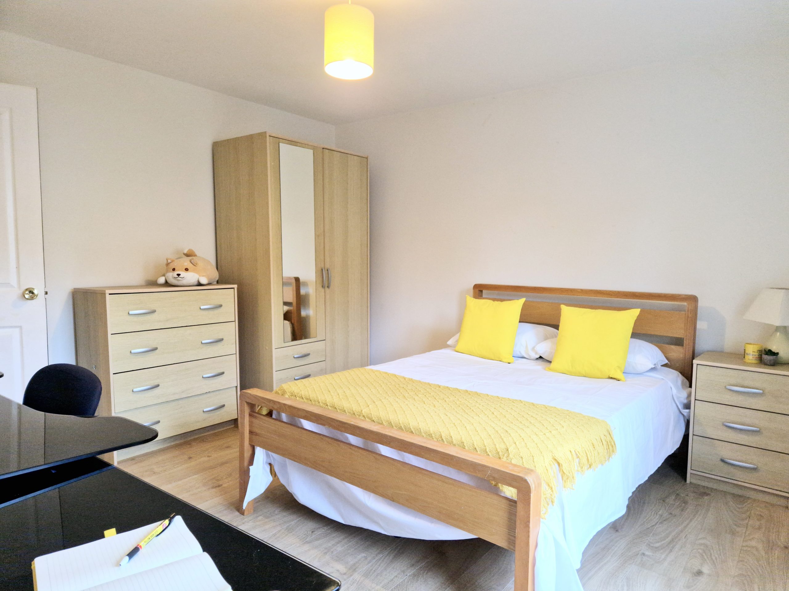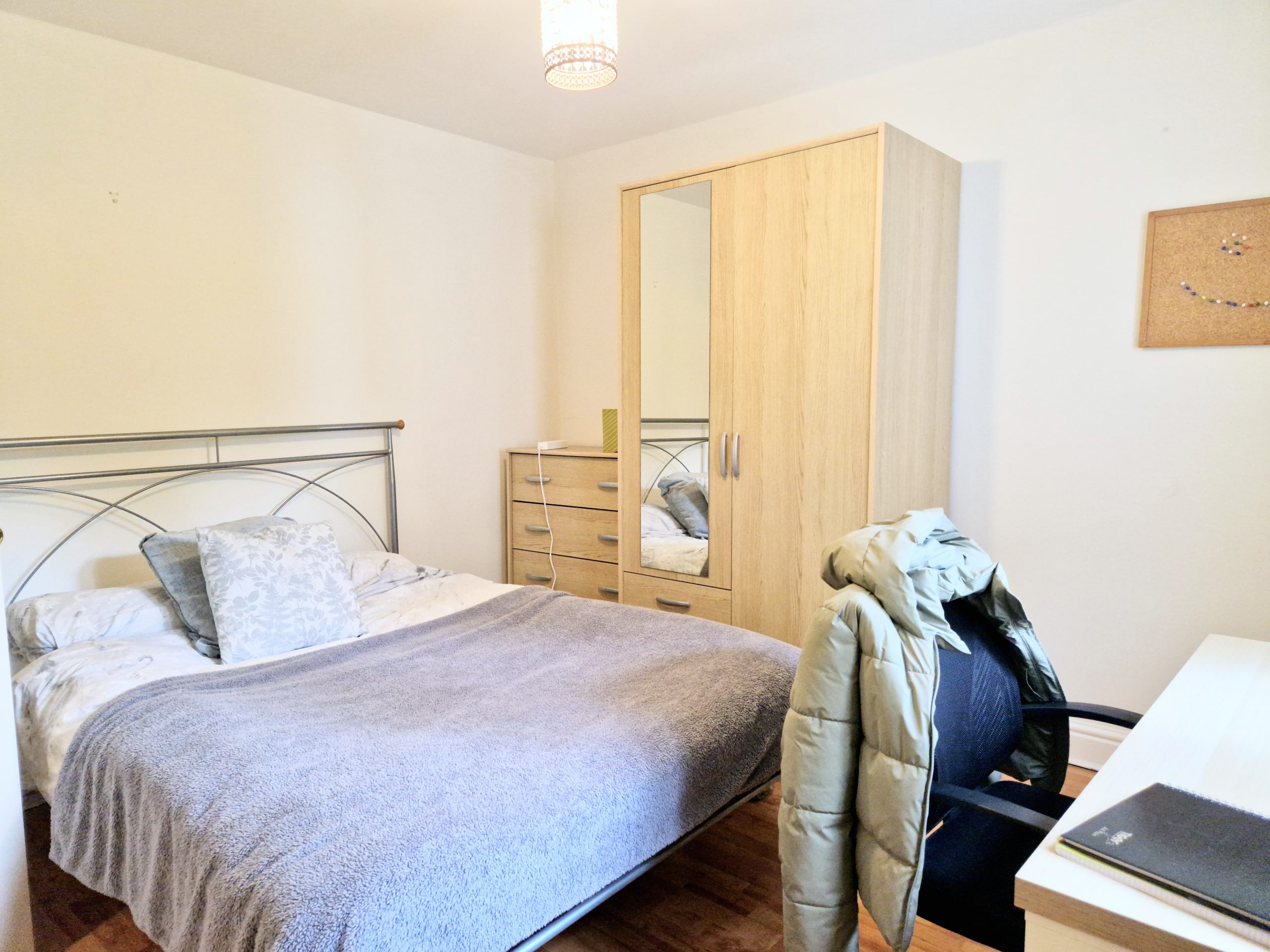 All of the bedrooms accommodate a double bed, along with desk & chair, wardrobe and chest of drawers. One bedroom has an en-suite shower room priced and thus is priced £153.00 pw.